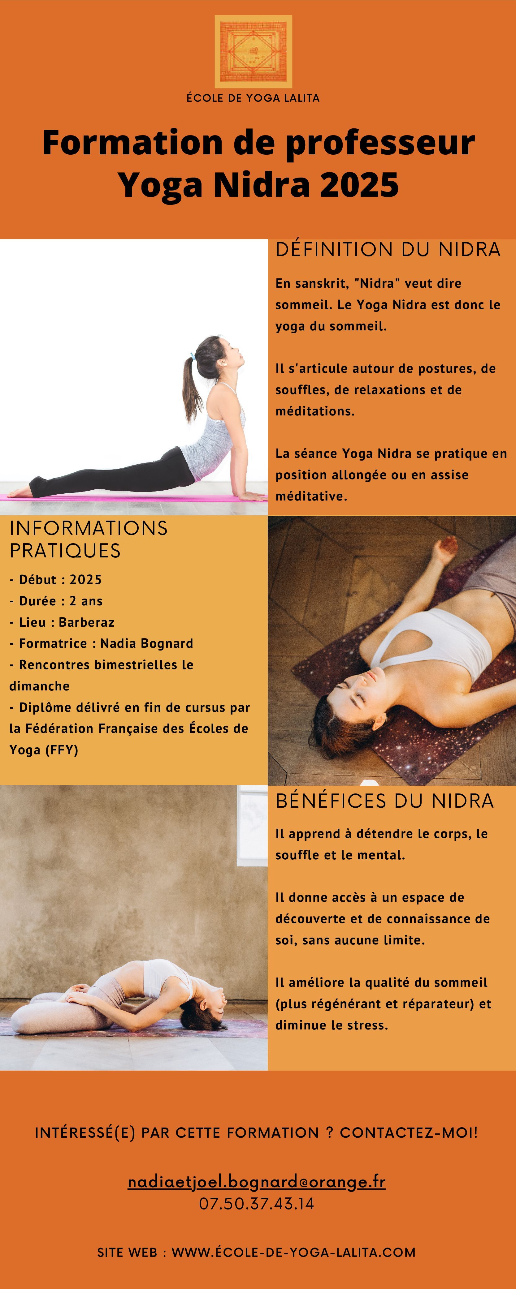 Nous vous proposons 6 rencontres le dimanche de 10h00 à 18h00 sur un an avec les pratiques du natha-yoga . Coût de la formation 100€ par rencontre.